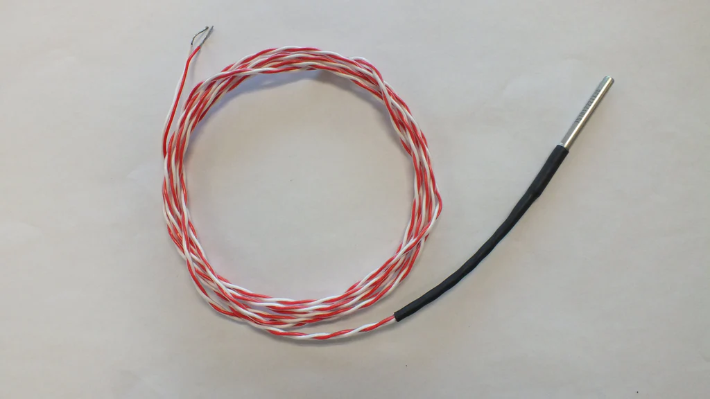 Water-resistant thermistor probe, stainless steel, -35°C to 95°C range, 3m length.